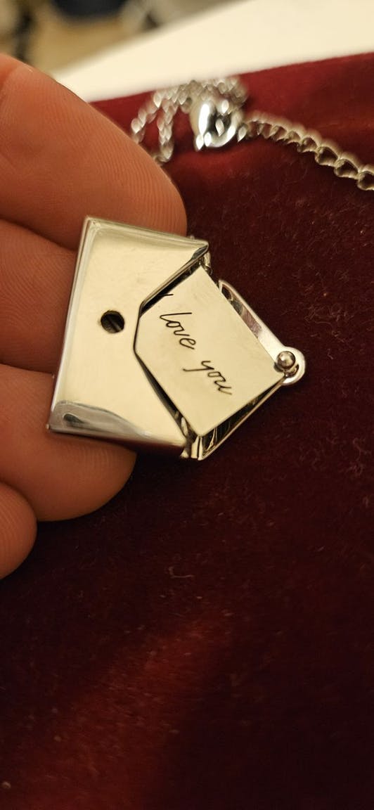 Un collar cobra vida, al abrirse revela con una pequeña carta que quieres a esa persona
